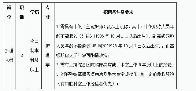 因醫(yī)院工作需要,現(xiàn)面向社會公開招聘8名護(hù)理工作人員,具體招聘要求如下: