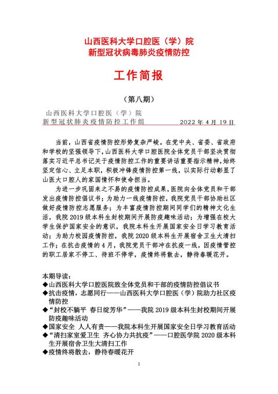 我院新型冠狀病毒肺炎疫情防控工作簡報(2022年 第八期)
