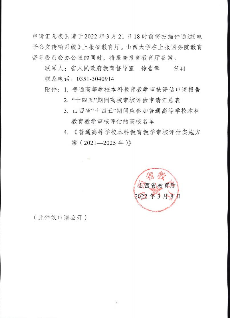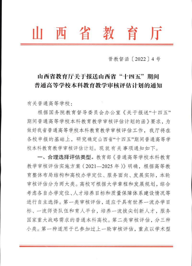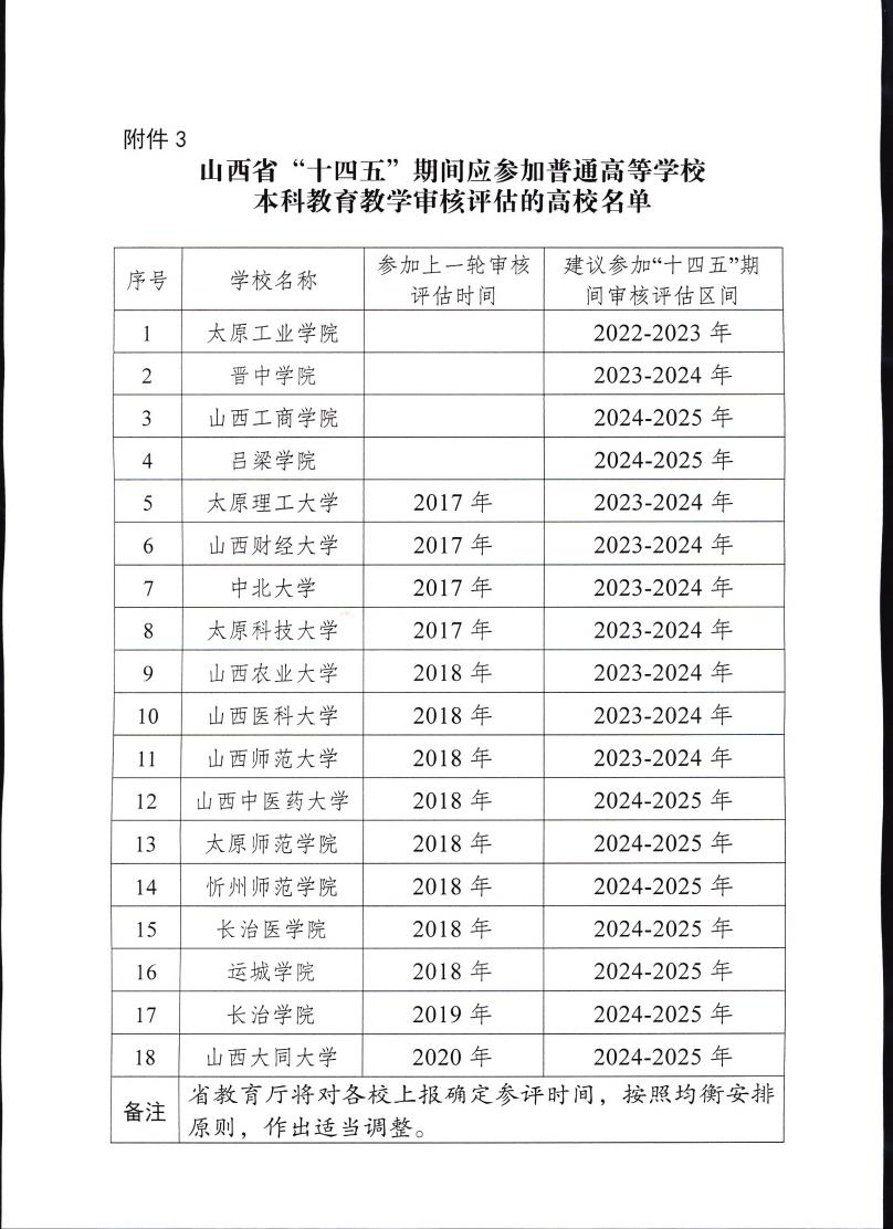 山西省教育廳關于報送山西省“十四五”期間普通高等學校本科教育教學審核評估計劃的通知
