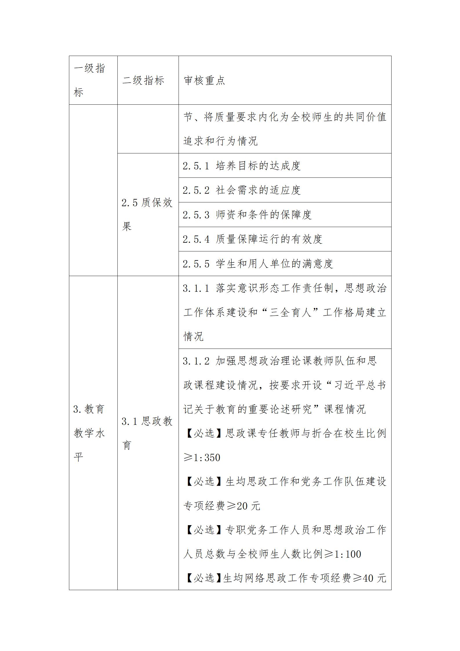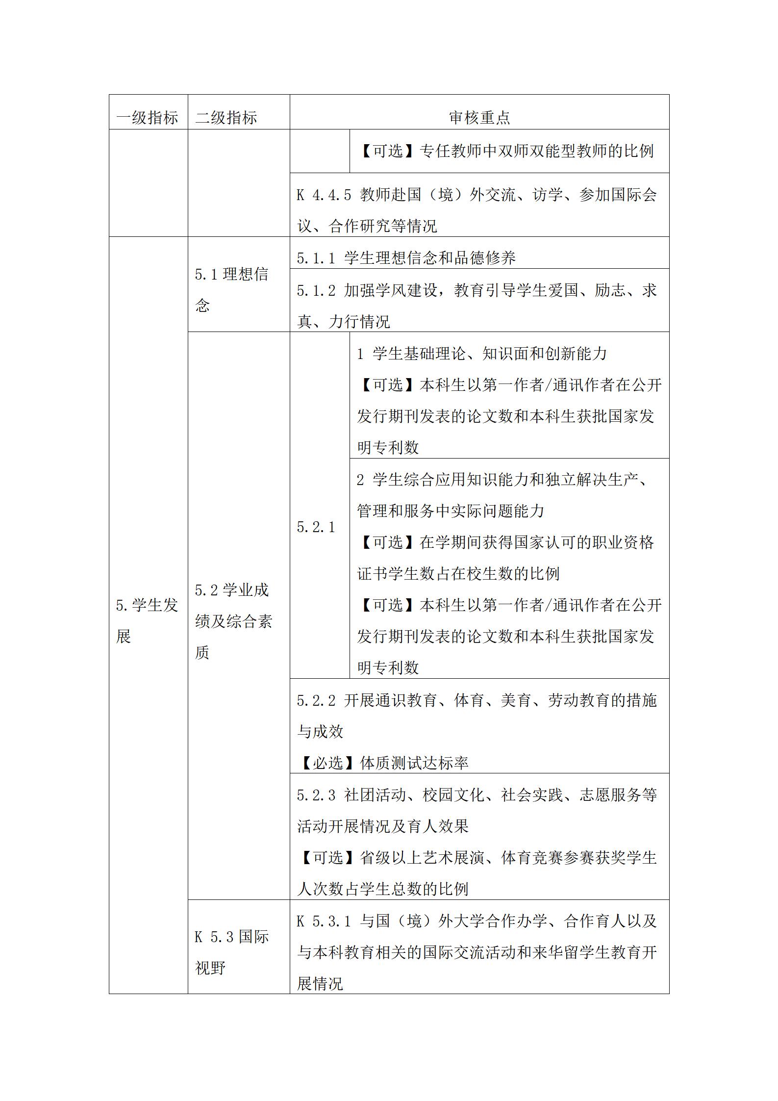 3. 審核重點中定量指標的具體要求可參考國家相關標準。其中,【必選】是指該定量指標學校必須選擇;【可選】是指該定量指標學?篩葑隕矸⒄剮枰褪導是榭鱟災餮≡裰遼8項。