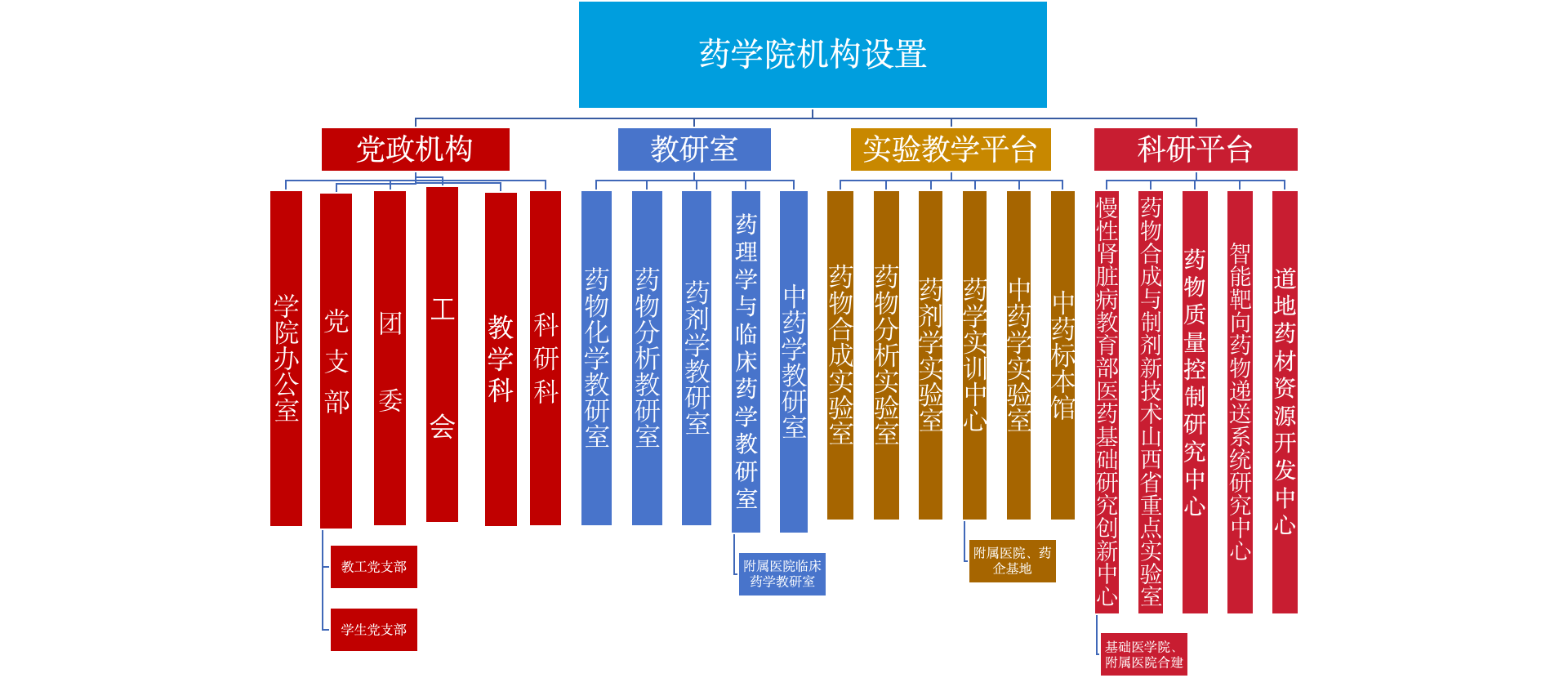學院現有教職工93人,其中專任教師72人,教授15人,副教授18人,具有博士學位教師71人,博士生導師14人,碩士生導師50人(含兼職導師),教育部高等學校藥學類專業教指委委員2人,“新世紀百千萬人才工程”國家級人選1人,山西省高校中青年創新拔尖人才2人,山西省教學名師2人,山西省學術技術帶頭人2人,山西省青年學術帶頭人2人,青年三晉英才4人,柔性引進國家級人才6人。擁有山西省科技創新重點團隊,山西省1331工程重點團隊等。