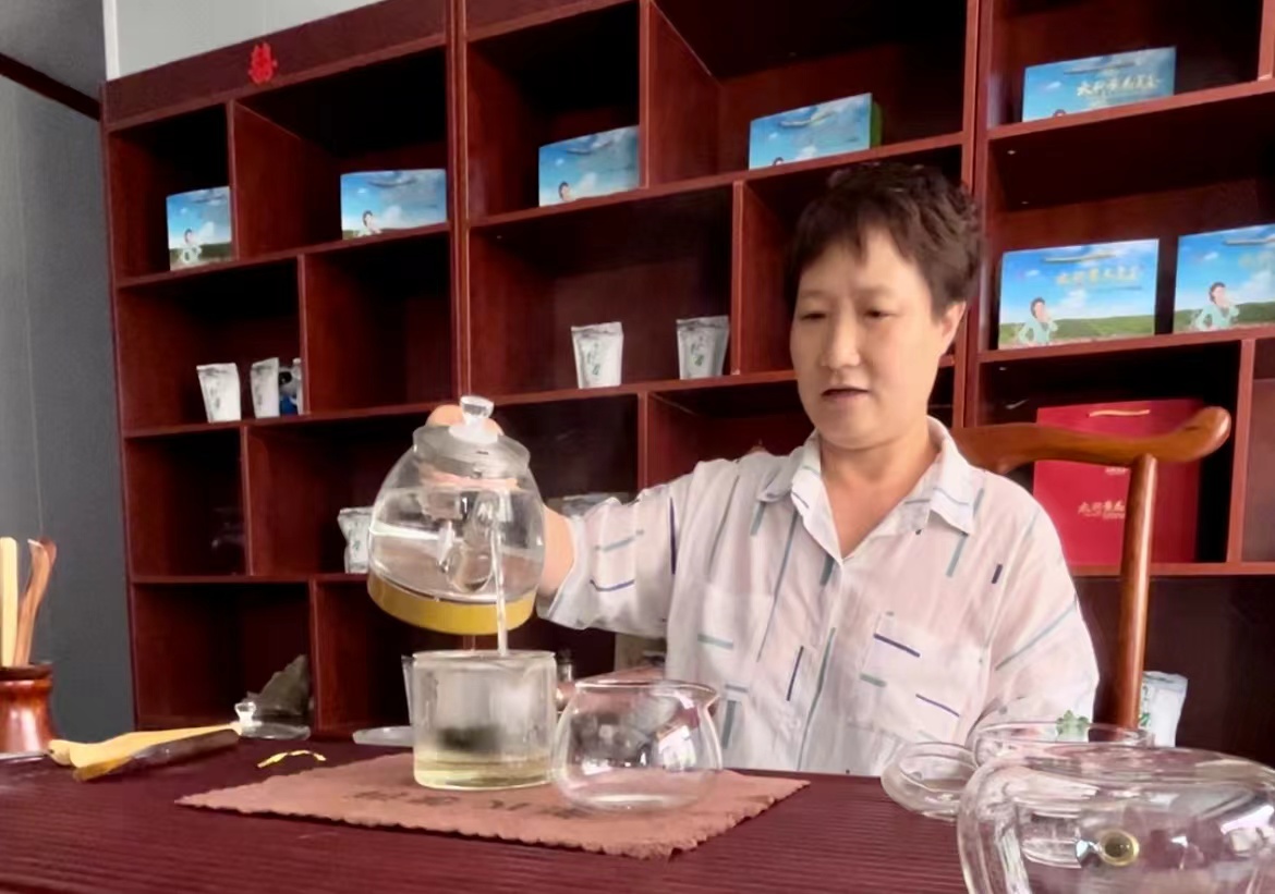 在駐村第一書記趙書記的帶領(lǐng)下,同學(xué)們來到了村里的茶社。茶社的郭曉軍老師精心為同學(xué)們泡制了連翹茶,茶水呈現(xiàn)清新的黃綠色,散發(fā)出自然的芳香。在品茶過程中,郭老師詳細(xì)講解了連翹茶的制茶工藝和發(fā)展歷史。她提到,每年的四五月是連翹茶的采摘期,村民們會在這段時間內(nèi)忙碌于山間,精心挑選連翹嫩葉。在制茶的高峰期,茶廠日生產(chǎn)量可達(dá)1000斤。雖然同學(xué)們到訪時已過制茶的高峰,茶廠內(nèi)沒有機(jī)器轟鳴和工人忙碌的身影,但郭老師的講述依然讓同學(xué)們感受到了那份繁忙與熱情。