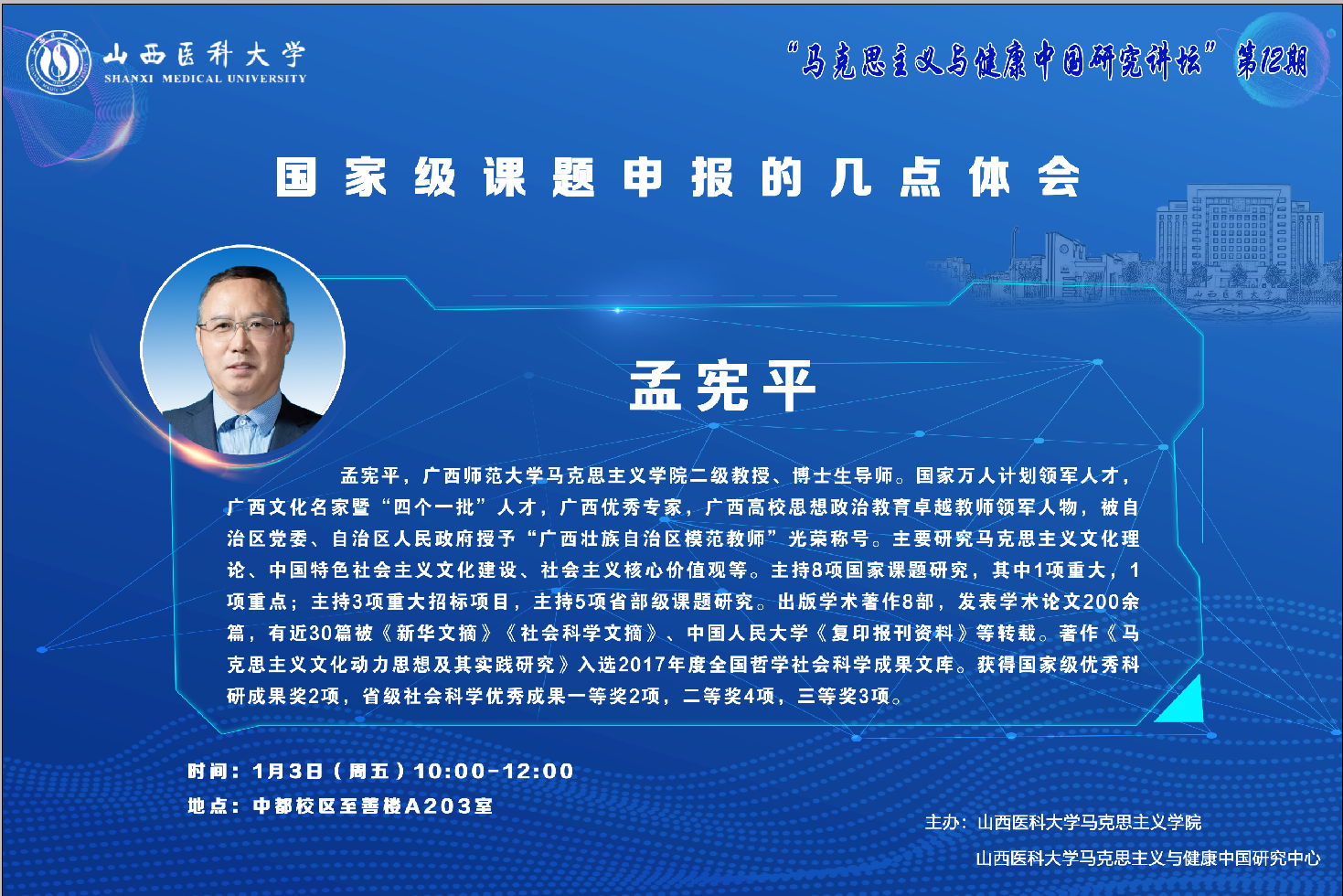 【“馬克思主義與健康中國研究講壇”第12期】孟憲平 講“國家級課題申報的幾點體會”