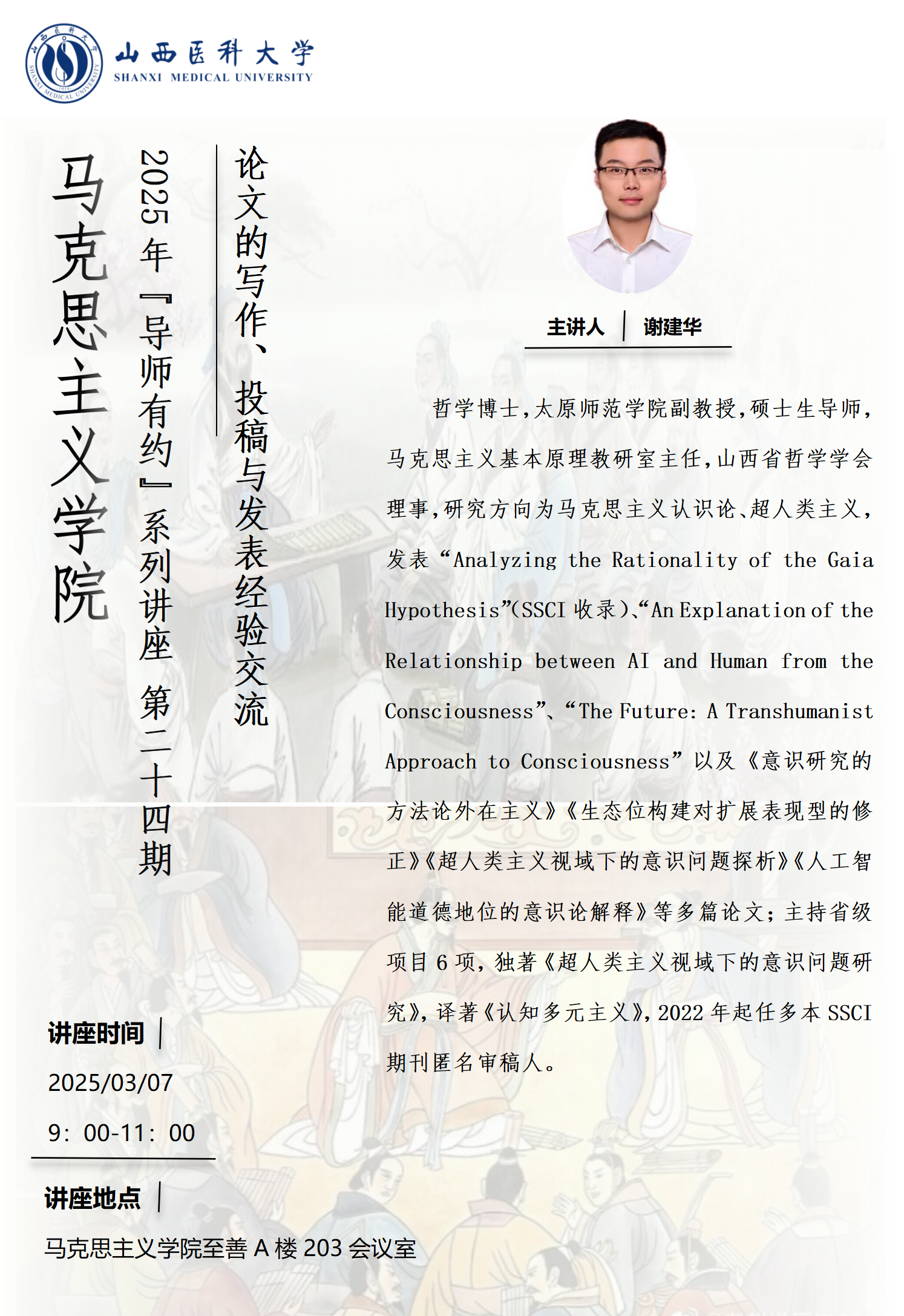 【“導師有約”第二十四期】謝建華講授“論文的寫作、投稿與發表經驗交流”