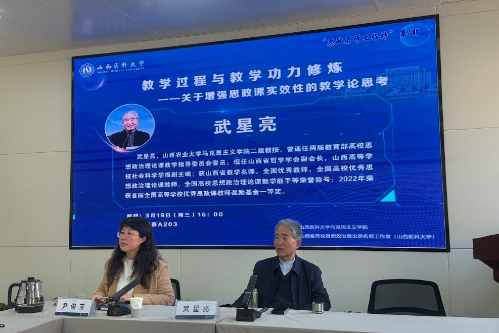 3月19日下午,“思政名師工作坊”第一期在我院至善樓A203室舉行,本次講座特邀山西農業大學馬克思主義學院二級教授武星亮,講座主題為“教學過程與教學功力修煉——關于增強思政課實踐性的教學論思考”。本次講座由尹俊芳副院長主持。