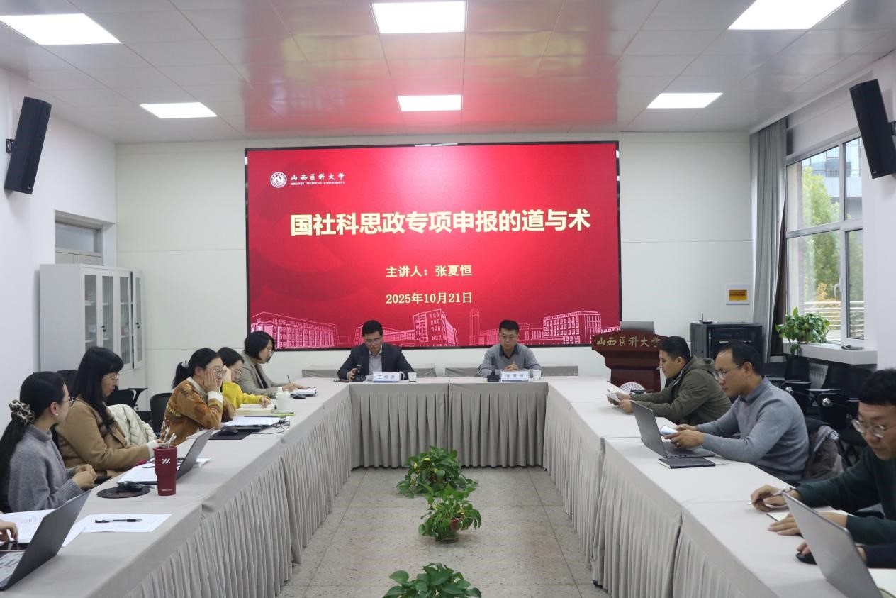 為深入貫徹落實(shí)黨的二十大和二十屆三中、四中全會(huì)精神,全面推進(jìn)“黨建+科研”深度融合發(fā)展,切實(shí)發(fā)揮基層黨組織在科研創(chuàng)新中的引領(lǐng)力與組織力,10月21日下午,馬克思主義學(xué)院“啟智潤(rùn)心”教師黨支部在至善樓A203會(huì)議室舉辦“醫(yī)馬當(dāng)先·智匯講堂”第一期活動(dòng),特邀浙江大學(xué)中國(guó)數(shù)字貿(mào)易研究院數(shù)字營(yíng)銷中心主任、西北政法大學(xué)長(zhǎng)安學(xué)者張夏恒教授就國(guó)家社會(huì)科學(xué)基金高校思想政治理論課專項(xiàng)課題申報(bào)進(jìn)行專題輔導(dǎo)。黨支部成員及課題申報(bào)教師參加了會(huì)議。