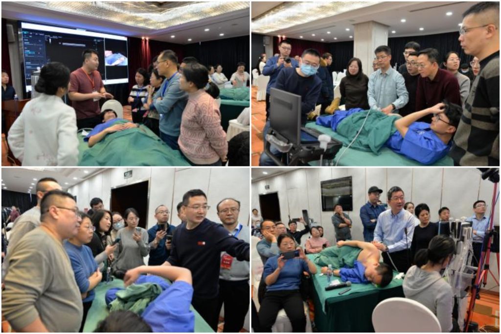 workshop環節,各位專家及青年醫師現場演示了麻醉超聲技術在臨床實踐中的實際操作,包括筋膜間隙阻滯技術、軀干神經阻滯技術、周圍神經阻滯技術、急診eFAST超聲、胃超聲、肺部超聲及經胸心臟超聲,讓學員們更直觀生動地了解圍手術期超聲技術的重要性和規范操作的技術要領。