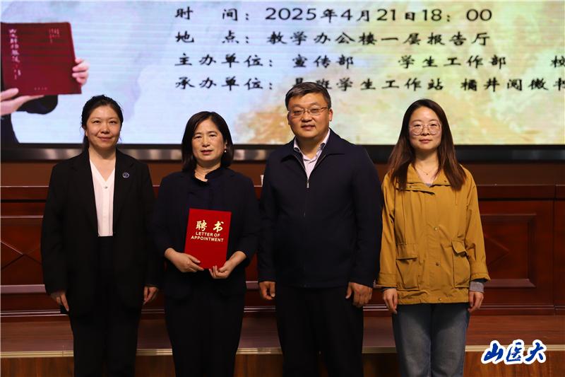 講座開始前,學生工作部聘請王祝英編審為我校易班工作站指導教師,學生工作部副部長楊潔為其頒發了聘書。