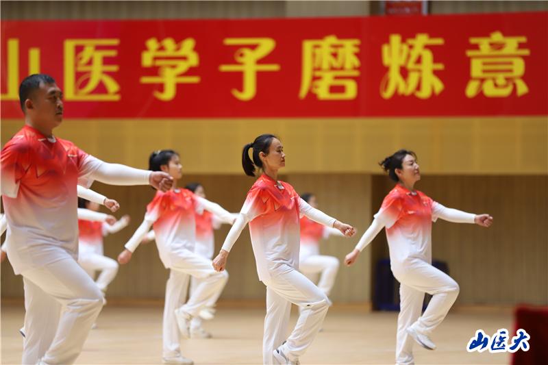 本次比賽共有21個院系約800名學(xué)生和100多名教師報名參加。比賽中,各參賽隊精神飽滿、意氣風(fēng)發(fā),動作準(zhǔn)確規(guī)范、整齊劃一,彰顯了山醫(yī)師生積極向上、團(tuán)結(jié)奮進(jìn)的精神風(fēng)貌。