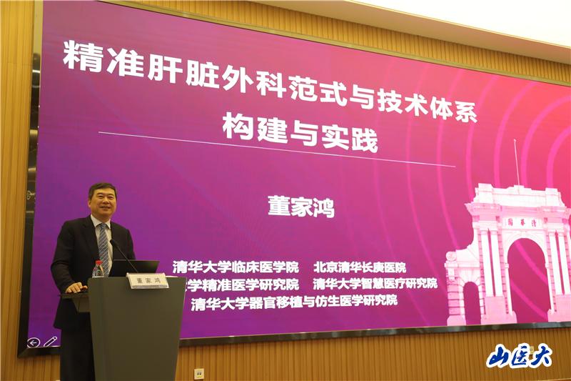 6月21日,我校特邀中國工程院院士、清華大學講席教授、清華大學臨床醫學院院長、北京清華長庚醫院院長董家鴻來我校作專題報告,報告在迎澤校區北U樓北側二樓報告廳舉行。校黨委常委、副校長焦向英主持報告會。第一臨床醫學院(第一醫院)黨委書記徐鈞,學校相關單位、部門負責人,師生醫護員工代表共200余人參會。