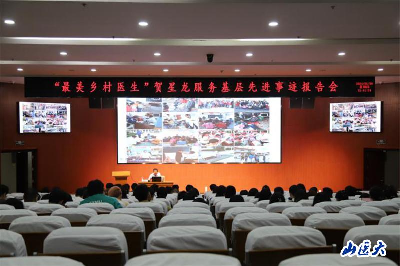 報(bào)告會上,賀星龍深情講述了自己在鄉(xiāng)村醫(yī)療一線的奮斗歷程。他分享了自己如何從一個“靠全村人支援才上得起學(xué)”的孩子成長為一名“與群眾彼此深深牽掛”的鄉(xiāng)村醫(yī)生經(jīng)歷,以及在工作中遇到的種種挑戰(zhàn)和困難。賀星龍醫(yī)生長期扎根鄉(xiāng)村,以高尚的醫(yī)德和精湛的醫(yī)術(shù),為當(dāng)?shù)厝罕娞峁┝藘?yōu)質(zhì)的醫(yī)療服務(wù),贏得了廣泛贊譽(yù)。他用自己的親身經(jīng)歷告訴同學(xué)們,服務(wù)基層不僅是一種責(zé)任,更是一種榮譽(yù)和使命。