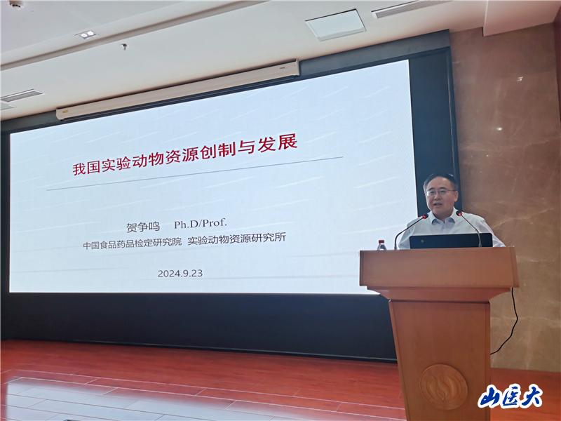 9月23日,中國食品藥品檢定研究院實驗動物資源研究所賀爭鳴研究員應(yīng)邀蒞臨我校作了題為“我國實驗動物資源創(chuàng)制與發(fā)展”的精彩學(xué)術(shù)報告。報告由實驗動物中心負(fù)責(zé)人陳朝陽教授主持。