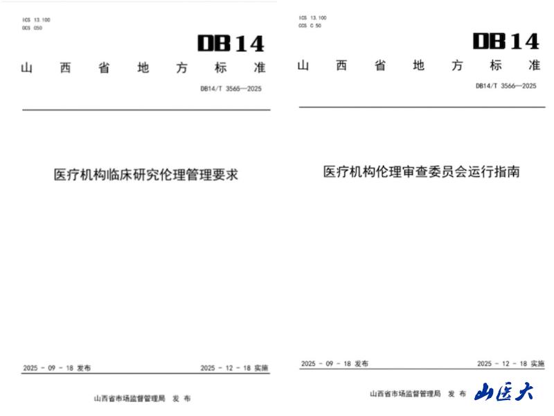 近日,《醫(yī)療機(jī)構(gòu)臨床研究倫理管理要求》(DB14/T 3565-2025)、《醫(yī)療機(jī)構(gòu)倫理審查委員會(huì)運(yùn)行指南》(DB14/T 3566-2025)經(jīng)過(guò)歷時(shí)一年的現(xiàn)場(chǎng)倫理審查、資料收集與調(diào)研、標(biāo)準(zhǔn)起草、意見(jiàn)征求和省衛(wèi)生健康標(biāo)準(zhǔn)化技術(shù)委員會(huì)審查評(píng)議后,由省市場(chǎng)監(jiān)督管理局發(fā)布。我校人文社會(huì)科學(xué)學(xué)院鄧蕊教授分別擔(dān)任兩項(xiàng)地方標(biāo)準(zhǔn)的第一牽頭人和第三牽頭人。