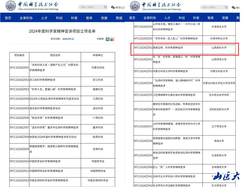 近日,中國科學技術協會2024年度科學家精神宣講項目立項名單公布,我校“正學風 比勤奮”工作室申報的項目《醫路生輝:科學家精神宣講》獲批立項。