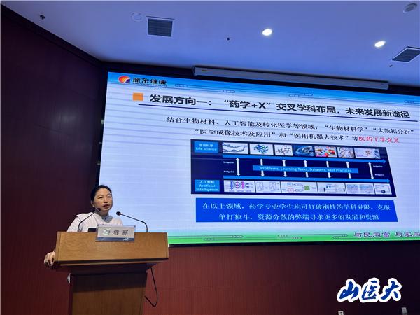 9月26日下午,智匯山醫(yī)·人才匯系列講座在我校中都校區(qū)圖書館一層多功能報(bào)告廳舉行。山西振東集團(tuán)研發(fā)總裁游蓉麗博士為師生作學(xué)術(shù)報(bào)告,藥學(xué)院教師代表、學(xué)生代表,基礎(chǔ)醫(yī)學(xué)院學(xué)生代表參加,校黨委人才工作部部長蔡蕊主持報(bào)告會(huì)。