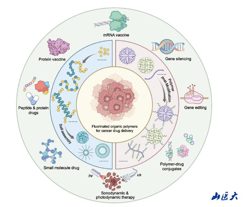 該綜述重點介紹了氟化有機聚合物的化學結構、合成方法和功能,并全面總結了其在抗癌藥物遞送中的應用,包括核酸類藥物、蛋白/多肽類藥物、光/聲治療劑、小分子藥物等。此外,還對基于氟化有機聚合物的納米載體在癌癥治療中的應用進行了簡要總結和預測,為設計具有優(yōu)良綜合性能的氟化有機聚合物納米藥物遞送系統(tǒng)用于癌癥治療提供了新的見解。