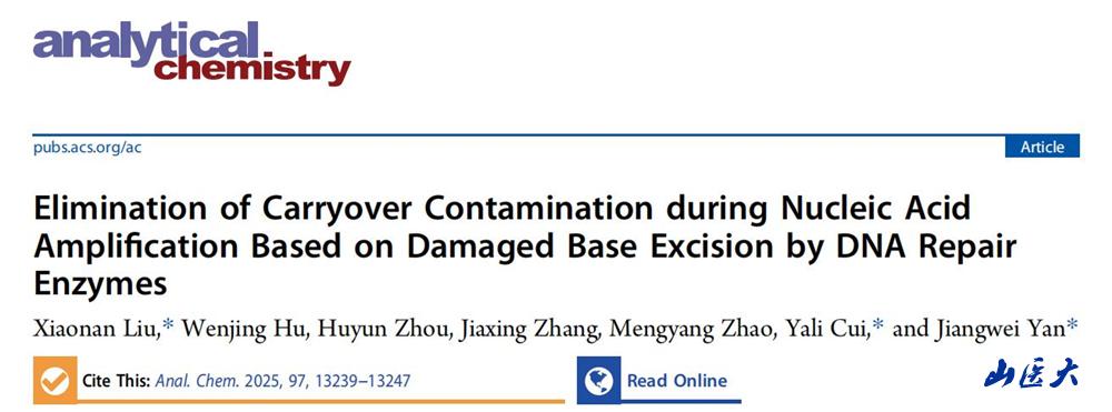近日,我校法醫學院嚴江偉教授創新團隊系列研究成果再次刊登在國際分析化學領域頂級期刊《Analytical Chemistry》封面,研究成果以題為“Elimination of Carryover Contamination during Nucleic Acid Amplification Based on Damaged Base Excision by DNA Repair Enzymes”的研究論文發表。