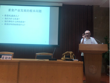 隨后,蔣先生將思路引導回這次工作坊的主線,素食文化的七個維度,即:慈悲護生、健康養生、簡樸惜福、自然環保、和諧公共、理想脫俗、清凈無染。并對每一個維度進行剖析,讓我們更為透徹的了解素食。在工作坊的最后,蔣先生與師生進行了討論與交流。