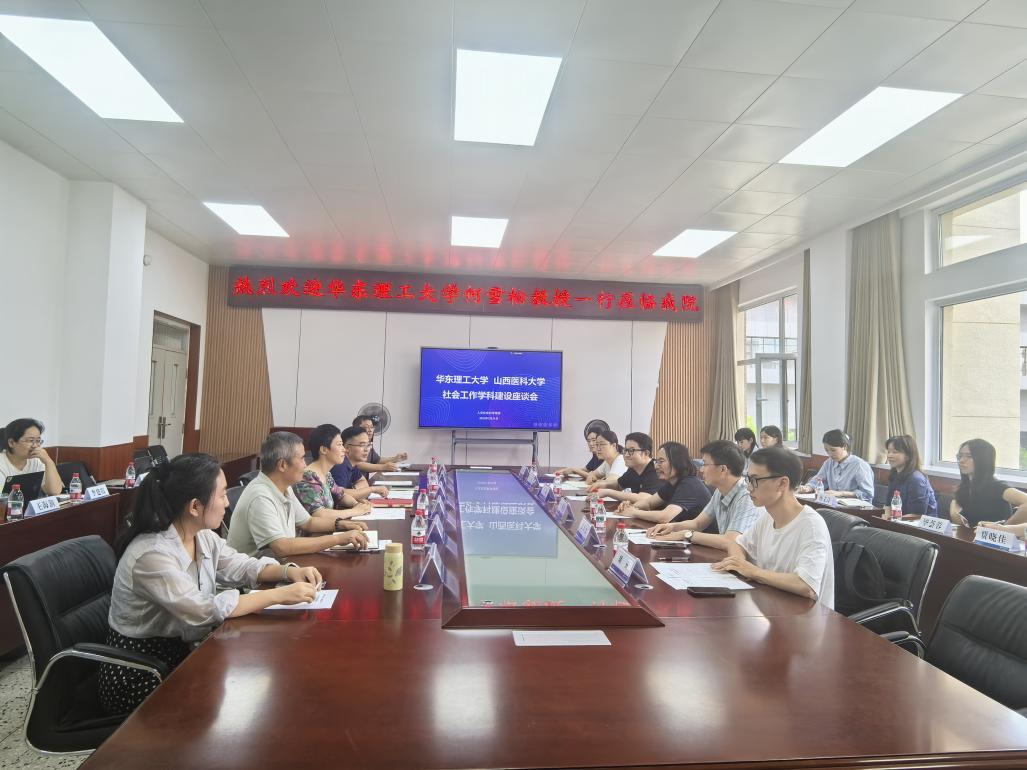 座談會上,鄧蕊強調了兩校在社會工作學科領域交流合作的重要性,希望雙方深化工作對接,就人才培養、學位點建設、科學研究等開展合作。社會工作教研室負責人劉超博士詳細分享了我院社會工作學科的建設歷程、現有成果及未來規劃。華東理工大學社會工作系主任黃銳副教授結合該校經驗,圍繞學科定位、科研平臺建設等內容進行了介紹,雙方圍繞學科學位點建設、專業特色打造、人才培養模式創新、實習實踐基地建設等議題進行交流。王志中重點介紹了臨終關懷社會工作、黨建社會工作等課程建設情況,何雪松充分肯定了我院在醫務社會工作領域的優勢,并鼓勵積極申報社會工作專業博士(DSW)項目,為學科長遠發展注入新動力。