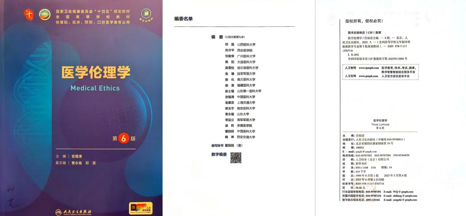 近日,由人民衛(wèi)生出版社出版、國家衛(wèi)生健康委員會“十四五”規(guī)劃教材《醫(yī)學(xué)倫理學(xué)》(第6版)正式出版。我校鄧蕊教授擔(dān)任本教材副主編,參與統(tǒng)籌內(nèi)容修訂與重點(diǎn)章節(jié)編寫。該教材由中國醫(yī)科大學(xué)宮福清教授擔(dān)任主編,山東大學(xué)曹永福教授與我校鄧蕊教授共同擔(dān)任副主編,匯聚全國醫(yī)學(xué)倫理領(lǐng)域權(quán)威力量,是面向基礎(chǔ)、臨床、預(yù)防、口腔等醫(yī)學(xué)類專業(yè)的全國統(tǒng)編教材,具有高度權(quán)威性與廣泛指導(dǎo)意義。