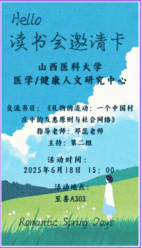 人文醫學專業讀書會預告:交流書目《禮物的流動:一個中國村莊中的互惠原則與社會網絡》