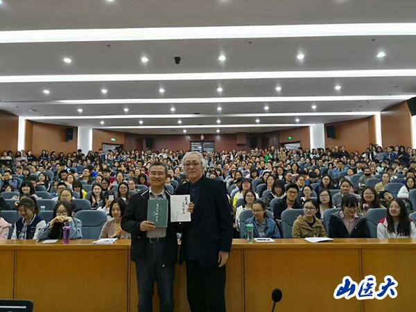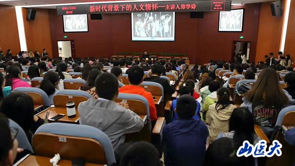 4月15日上午,第八屆“健康人文月”在中都校區(qū)圖書館一層報告廳拉開帷幕。本屆“健康人文月”的主題是“敬畏生命 尊重生命 關(guān)愛生命”,為突出活動主題,首場講座即“健康人文論壇第九十三講”,特別邀請了年過八旬的美學(xué)專家鄭學(xué)詩先生擔(dān)任開講嘉賓,以“新時代背景下的人文情懷”為題,講述人文情懷中的愛與美。此次講座同學(xué)們期待已久,可容納200人的報告廳座無虛席。本次講座由人文社會科學(xué)學(xué)院院長王志中教授主持,講座開始前鄭學(xué)詩先生向健康人文研究中心贈送了他的兩本專著,并與現(xiàn)場同學(xué)合影留念。