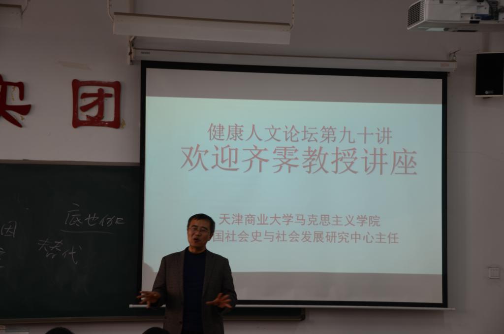 11月3日下午,健康人文論壇第九十講邀請?zhí)旖蛏虡I(yè)大學齊霽教授在中都校區(qū)慎思樓A座102教室做了題為《中國共產(chǎn)黨對中國和世界禁毒事業(yè)的重大貢獻》的專題講座。講座由人文社會科學學院王志中院長和馬克思主義學院蘇果云院長共同主持,人文學院、馬克思主義學院和管理學院部分師生聆聽了報告。