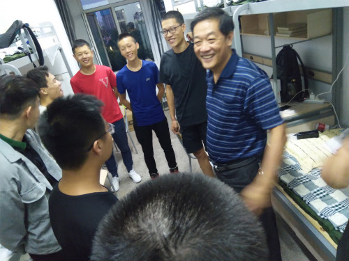 會后晚些時候,我院黨總支任勝利書記、劉曉麗副書記和輔導員張猛老師,共同到學生宿舍(暖煦樓A和秀逸樓A)看望和慰問新生。任書記親切地問詢每一位新生的開學情況,關心他們的生活,查看學生們的住宿安排、了解學生們的就餐情況、問詢學生們的家庭情況等,使同學們倍感溫暖。任書記表示,人文學院會按照學校的要求,盡力培養每一位學生,希望每一個新生能更多的了解自己所學的專業狀況,盡快適應學校環境,開始新的學習生活。