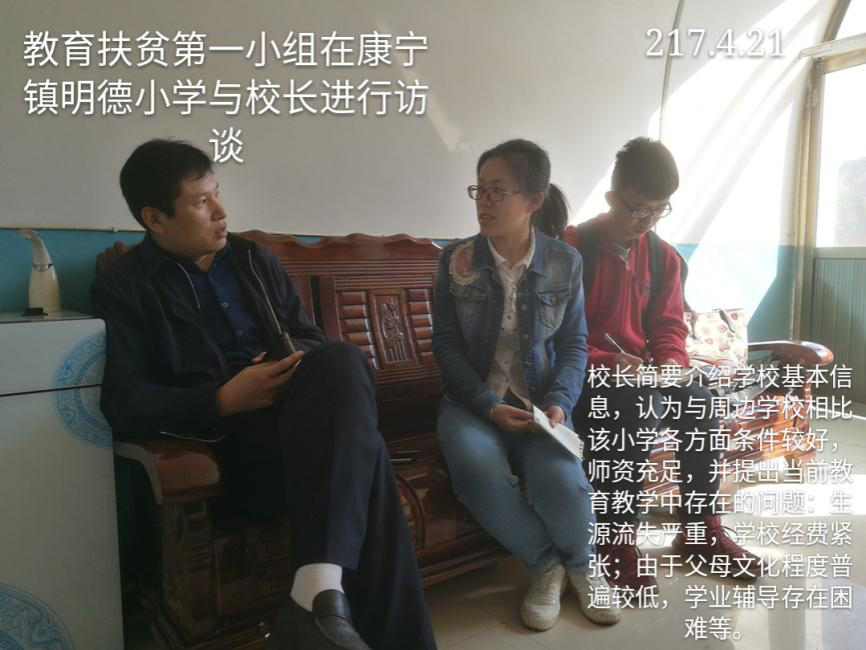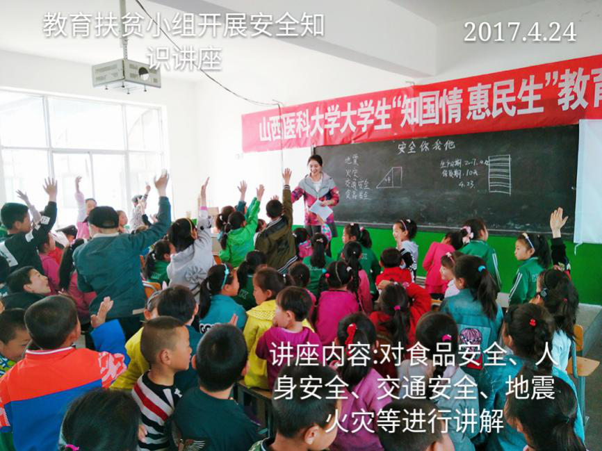 4月18日,由人事處、人文社會科學學院、馬克思主義學院共同組織,王志中、劉曉麗、姚尚滿、賈冰云為指導老師,由社會工作專業本科生和公衛學院研究生等12名同學組成了大學生“知國情,惠民生”教育實踐服務隊,在國家級貧困縣呂梁市興縣康寧鎮康寧村開展為期十天的教育扶貧活動。