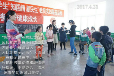 活動分為前期調研與社會工作專業服務兩部分,通過訪談和問卷調查方式,教育實踐服務隊了解到該村貧困兒童面臨以下幾方面共同問題:家庭經濟狀況較差,心理健康發展受到影響,教育資源缺乏,健康醫療衛生教育不足,安全隱患突出。根據調查到的問題,服務隊設計了服務計劃,開展一系列專業性的社會工作服務,從而達到深化貧困兒童對社會支持網絡的認知,提升人際交往能力,適時表達自己內心需求;彌補當地教育資源的缺失,激發貧困兒童學習興趣,改變他們的學習方式,豐富校園文化生活;向康寧鎮康寧村在校師生普及傳染病預防知識與健康營養膳食搭配相關知識;向貧困兒童介紹交通、戶外、食品安全等相關知識,幫助他們提高安全防范意識的目的。