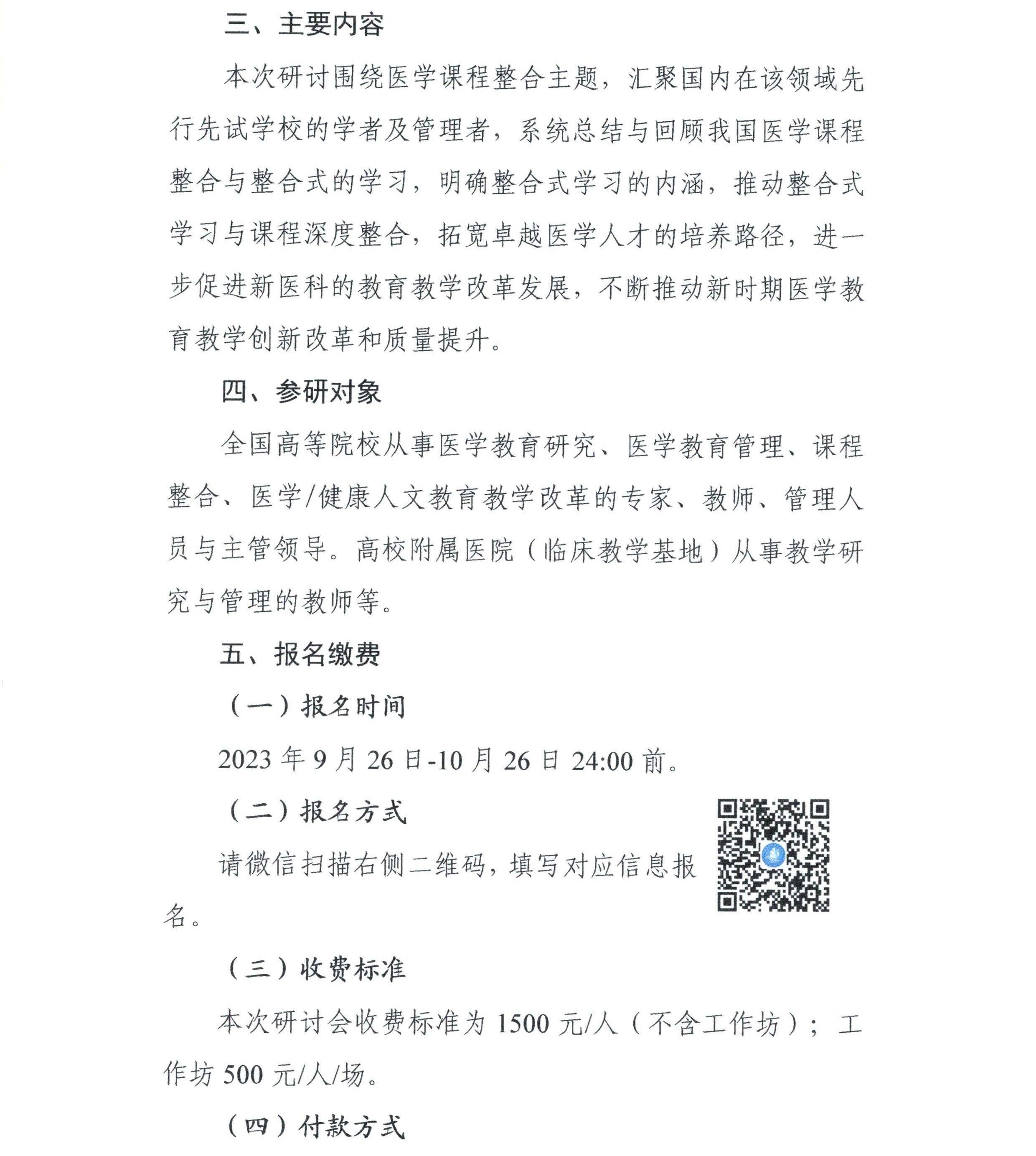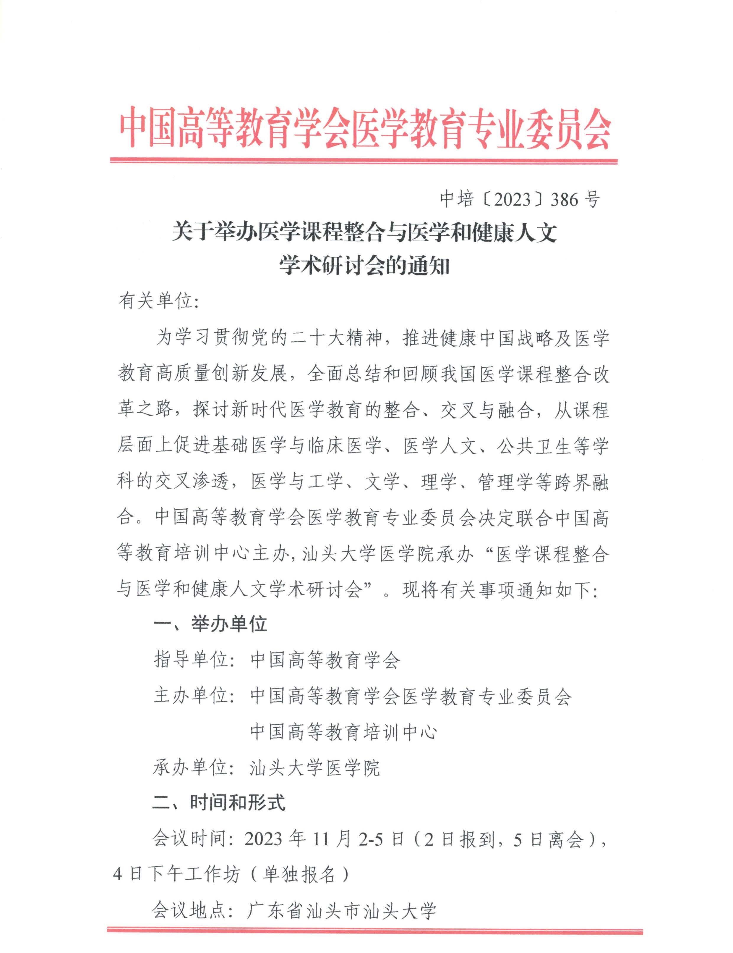 關于舉辦醫學課程整合與醫學和健康人文學術研討會的通知
