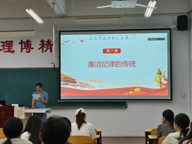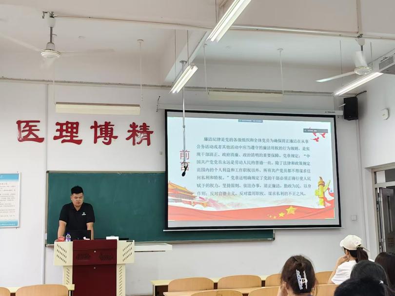 黨課的第二部分由馬克思主義學院的研究生趙坤主講。他圍繞廉潔紀律的歷史展開了講述,從黨的創立之初的艱苦奮斗,到如今的繁榮昌盛,廉潔紀律一直是黨的重要法寶。他列舉了多個具體案例,生動形象地展示了違反廉潔紀律的嚴重后果。其中,他特別提到了一種學生違反紀律的行為——購買學分券。這種行為不僅違反了學校的規章制度,更違背了黨的廉潔紀律要求,是一種極其不負責任和自私自利的表現。