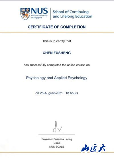 During the summer vacation, Chen Fusheng, a psychiatry major from the School of Mental Health of our university, and 39 students from Southwest University, Guangzhou Medical University, Beijing University of Chemical Technology and other universities participated in the online medical exchange project of the National University of Singapore in the summer of 2021.The exchange program includes pr...