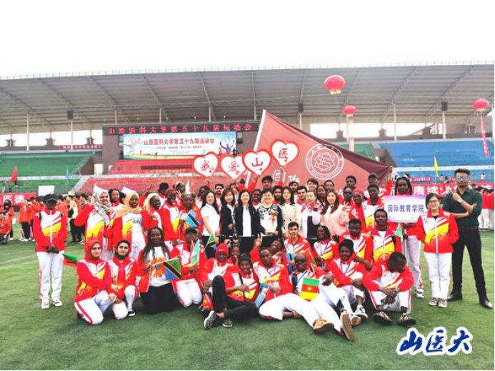 From May 14th to 16th, the 59th School Sport Carnival of our school was held on the Zhongdu campus. In this school games, a total of 54 students were sent to form the international student team by the Institute of International Education. They entered the venue waving the Chinese flag and the flags of 25 countries of origin at the opening ceremony, which adding a different landscape to the opening ceremony.