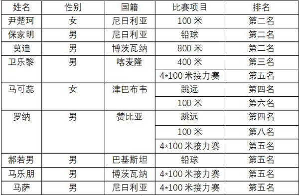 國際教育學院有18名學生報名參加7個田徑項目的競賽。他們努力拼搏、奮勇爭先,為學院取得團體總分第七名的歷史最好成績,展現出國際學生積極進取的青春風采。