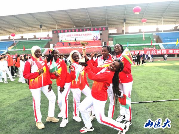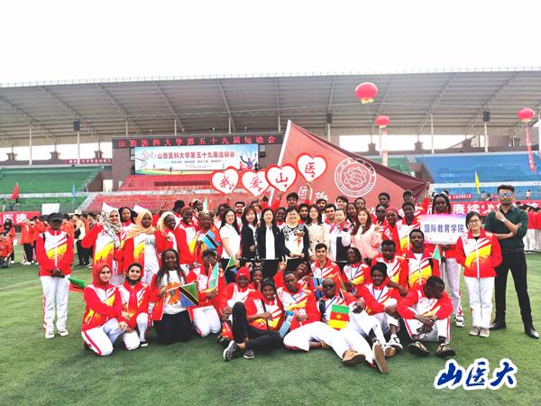 5月14-16日,我校第59屆運動會在中都校區舉行。在本屆校運會中,國際教育學院共派出54名學生組成國際學生代表隊,他們在開幕式上揮舞著中國國旗和25個生源國的國旗入。皇皆鎏砹艘壞辣鷓姆緹。