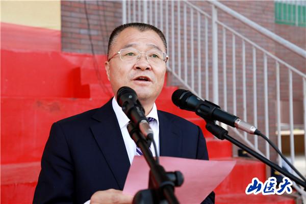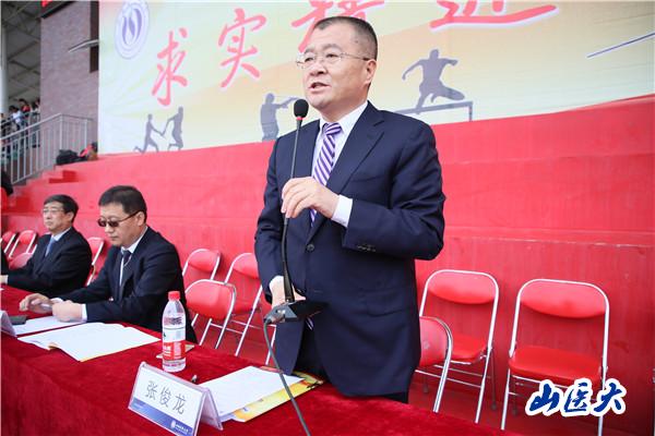 President Li Sijin made the opening speech. He first pointed out thatphysical education was an important part of university personnel training, and it played an irreplaceable role in strengthening physical integrity and cultivatinga healthy personality. Takingthe all-round development of the school members as thecore principle and pursuing excellence as the goal, our university actively promoted the sports work, constantly improved the physical education and had made great progress inphysical education, sports competition,and mass sporting activities. In 2017, the school aerobics team wonfirst prize and the All-Star Championship in the 19th Chinese University Basketball Cheerleading Championship. On behalf of the students in Shanxi Province, our university participated in the gymnastics competition of the 13th National Students Student Sports Meeting and won the 10th place in Men's Singles and the12th place in Men's Group Five Competition. Moreover, appointed by the Ministry of Education, we would participate in the 2018 World University Students' Championship in Poland in October on behalf of the national university students. Besides, our volleyball team, taekwondo team and basketball team also had great results in the provincial competitions.The sports meeting had become an important part of campus culture and campus life.