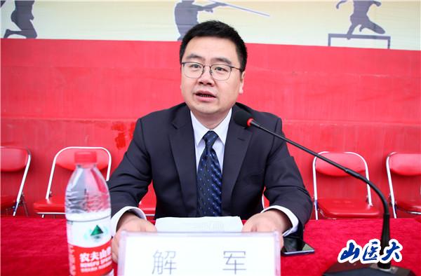 On May 11th - 12th, the 57th Sports Meeting of SXMU was held in the stadium of the Zhongdu Campus. Party Secretary Zhang Junlong, President Li Sijin, Deputy Party Secretary Wang Jun and He Peifeng, Party Standing Committee Member and Secretary of Inspection Commission Dang Zhifeng, Party Standing Committee Member and Vice President Wang Hongwei, Vice President Xie Jun, Party Standing Committee Member and Vice President Zhang Hui, Party Standing Committee Member and Dean of the First Clinical Medical School Wang Binquan, Party Standing Committee Member and Party Secretary of the First Clinical Medical School Chen Liping, Party Standing Committee Member and Party Secretary of the Second Clinical Medical School Xu Jun attended the opening and closing ceremonies of the sports meeting. Vice President, Xie Jun presided over the opening and closing ceremonies of the sports meeting.