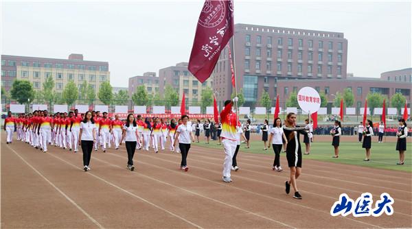The57th Sports Meeting of SXMU kicked off with the opening ceremony beginning at 8 a.m. on May 11th. As a tradition, the ceremony started with a parade. Taking the majestic Athlete March as the background music played,the students with neat paces, sonorous slogans and tidy clothes,led the parade carrying the national flag, the school flag and the red flowers followed by the judges’ team and 29 athletes’ teams from different schools. This year, the International Education Schoolteam, which consisted of more than 70 international students from 13 countries, was a beautiful scene in the opening ceremony and their cheerleading performance was motivating and attention-grabbing. Besides, there are representatives from our nine new affiliated-hospitals participating in the sports meeting, including the Sixth Clinical Medical School (the Sixth Hospital Affiliated), Fenyang Clinical Medical School (the Fenyang Hospital Affiliated), the Seventh Clinical Medical School (the Seventh Hospital Affiliated), the Eighth Clinical Medical School (the Yuncheng Hospital Affiliated), the Ninth Clinical Medical School (the Taiyuan Central Hospital Affiliated), the Tenth Clinical Medical School (the Xinzhou Hospital Affiliated), the Eleventh Clinical Medical School (the Jinzhong Hospital Affiliated), the Fifteenth Clinical Medical School (the Lvliang Hospital Affiliated) and the Mental Health Medical School (the Mental Health Hospital Affiliated).