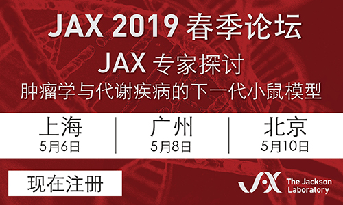 The Jackson Laboratory誠摯邀請您參加2019春季論壇。這次論壇主要關注腫瘤學與代謝疾病的小鼠模型,以及應用于藥物開發的小鼠模型及相關服務。我們還會更新JAX小鼠面向中國的新訂購和供貨渠道。