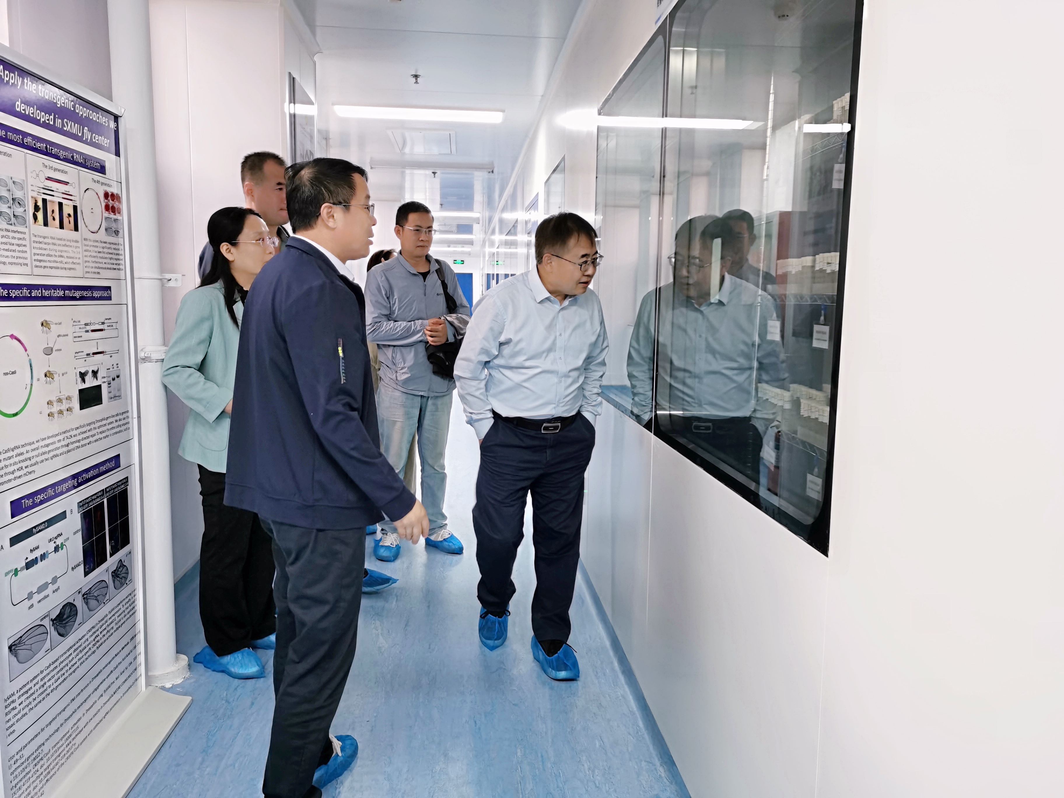 會后,賀爭鳴研究員在陳朝陽教授和宋國華教授陪同下參觀了中都校區(qū)實驗動物中心。他對中心發(fā)展給予了充分肯定,并對中心未來工作提出指導意見。