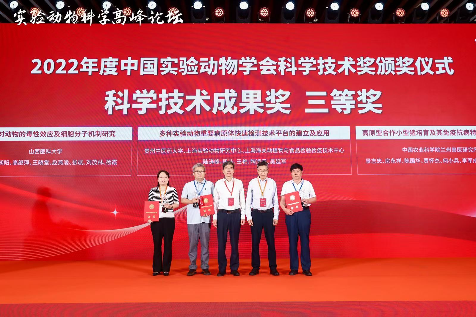 5月18日,“實驗動物科學高峰論壇”在廣州市召開,屆時舉行了“中國實驗動物學會科學技術獎頒獎儀式”和召開了“中國實驗動物學會第八次會員代表大會暨中國實驗動物學會第八屆理事會第一次會議”。國內外著名的實驗動物科學及生命科學、醫學等領域專家出席現場會議,我校實驗動物中心陳朝陽教授和宋國華教授同時當選為中國實驗動物學會第八屆理事會理事。 宋國華教授申報的項目“環境氟對動物的毒性效應及細胞分子機制研究”榮獲2022年度中國實驗動物學會科學技術成果獎三等獎。中國實驗動物學會科學技術獎是科技部批準登記,獎勵面向全國的實驗動物行業科技獎。根據《中國實驗動物學會科學技術獎獎勵辦法》的有關規定,學會每兩年組織一次評審和授獎。