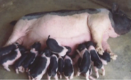 陸川小型豬:短、寬、肥、圓,背腰寬廣凹下,腹大常拖地,毛色呈一致性黑白花,成熟早、繁殖力高,母性好,遺傳性能穩定,適應性強,耐粗飼,抗病能力強。