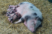 明尼蘇達·霍麥爾小型豬:這是第一個小型豬品系,具有黑白斑的毛色特征。