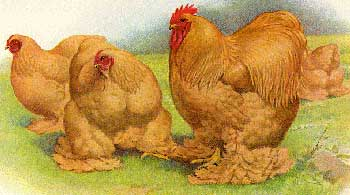 3. 九斤雞(Cochin):肉用型,原產于中國。性情溫順,抱性強,但體軀笨重,不適于孵蛋,性成熟晚,年產蛋量約80~100個。成年公雞體重4.5~7kg,母雞3.5kg。九斤雞有4個品變種,即淺黃色九斤雞,鷓鴣色九斤雞,黑色九斤雞和白色九斤雞,而以淺黃色的最普遍。