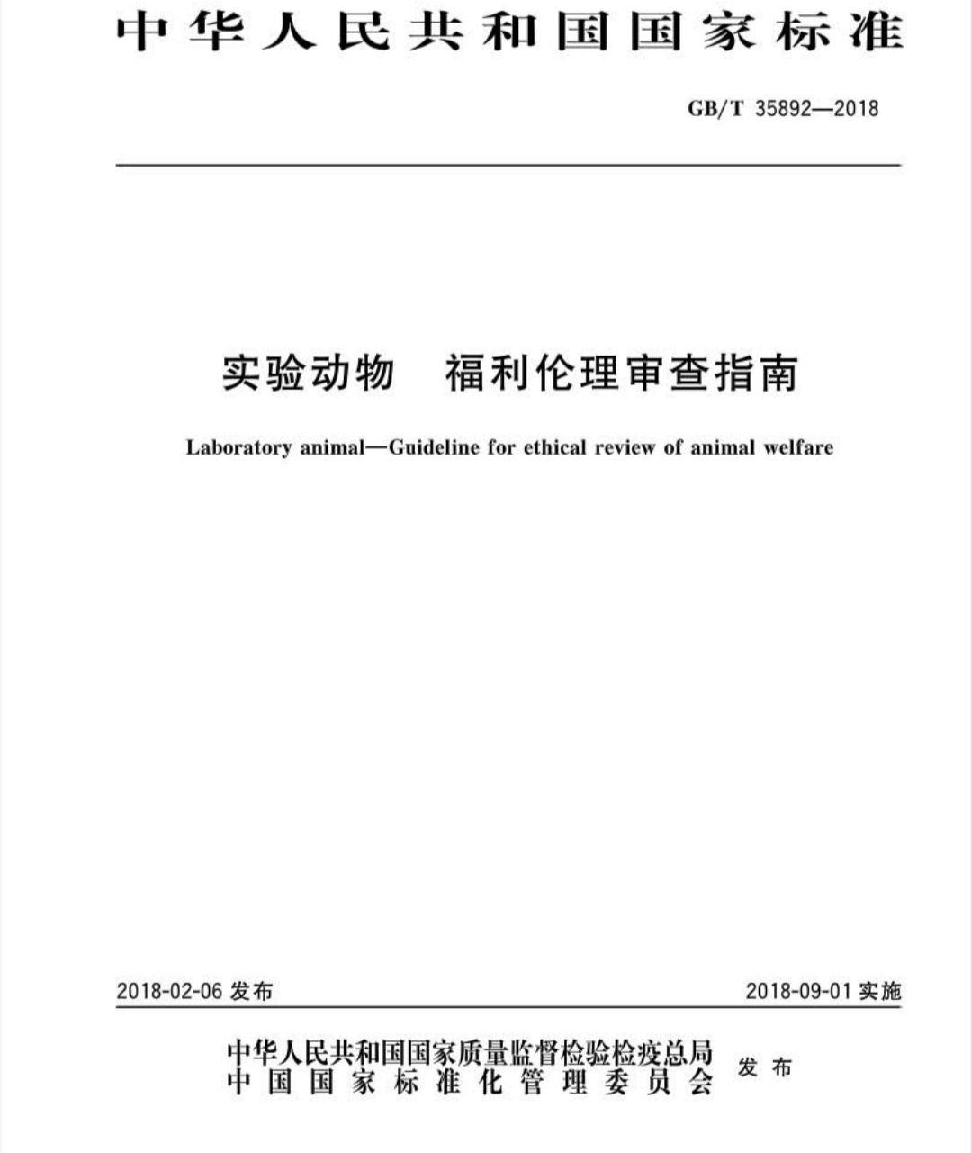 GB/T 35892-2018 實驗動物 福利倫理審查指南