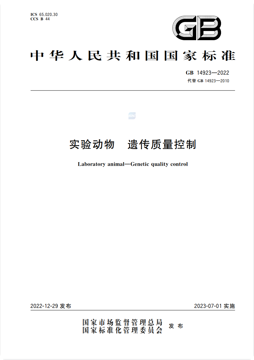 GB 14923-2022 實(shí)驗(yàn)動物 遺傳質(zhì)量控制