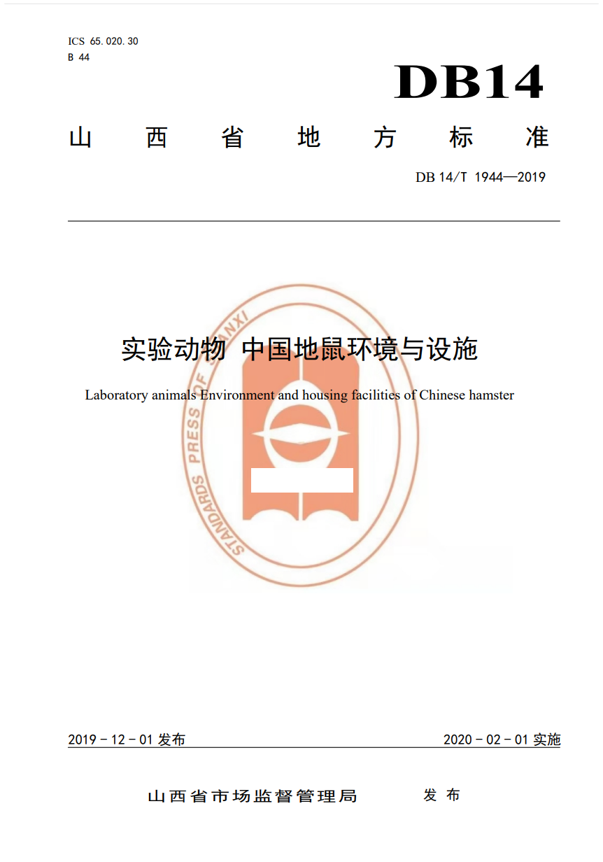 DB 14/T 1944-2019 實驗動物 中國地鼠環境與設施