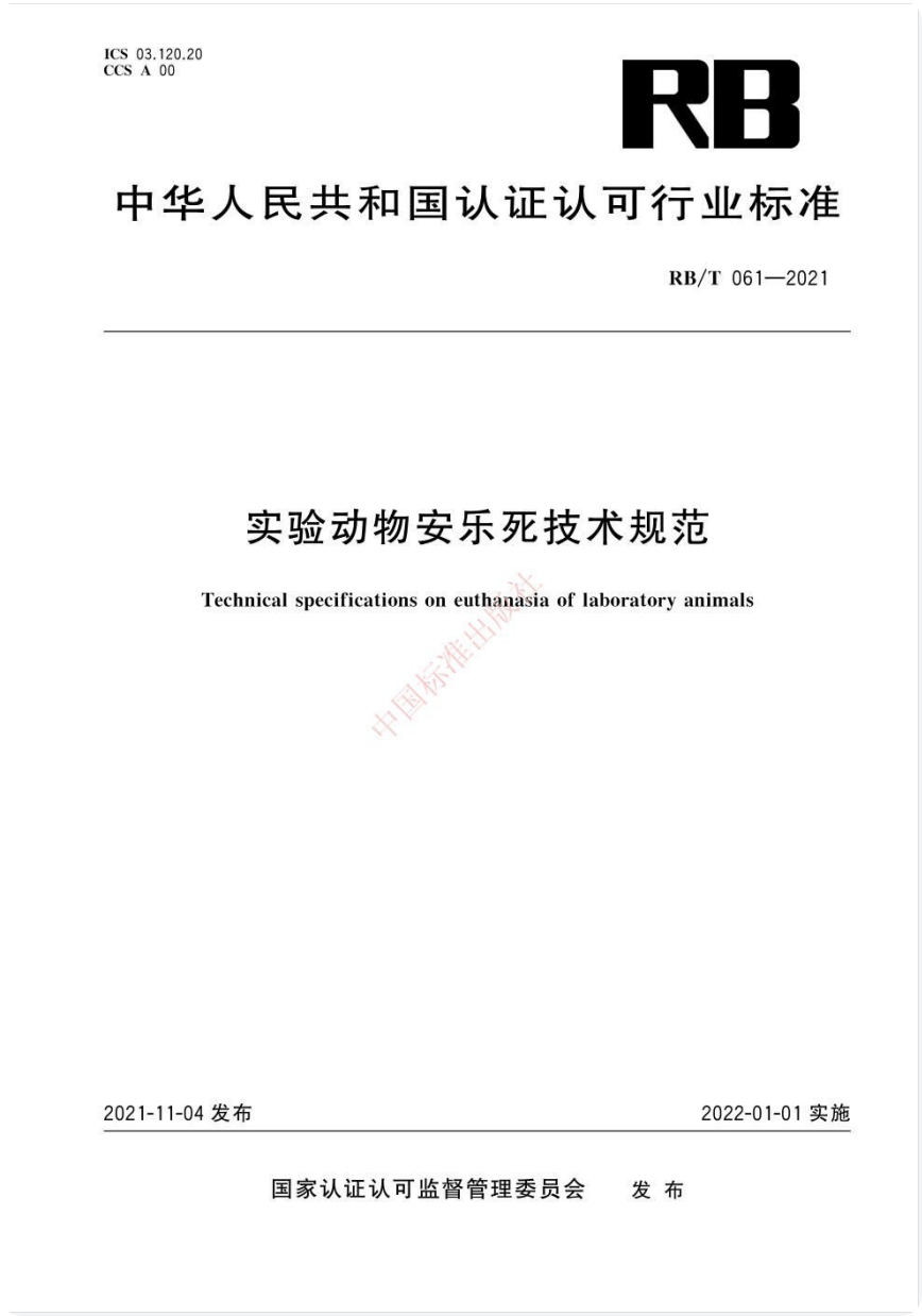 RB-T 061-2021 實(shí)驗(yàn)動(dòng)物安樂死技術(shù)規(guī)范