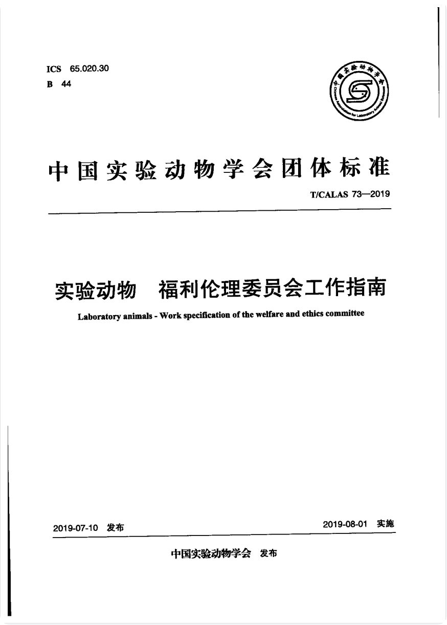 T-CALAS 73-2019 實驗動物 福利倫理委員會工作指南